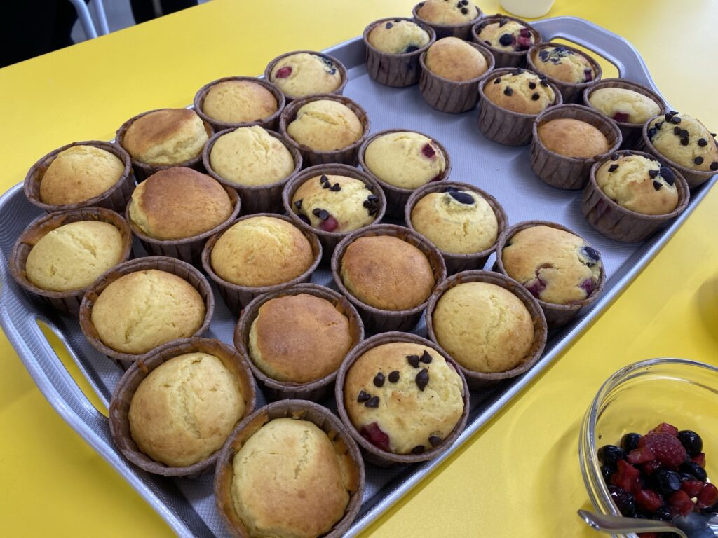 チョコチップを入れたりベリーを入れたりして、いろんなカップケーキができました。