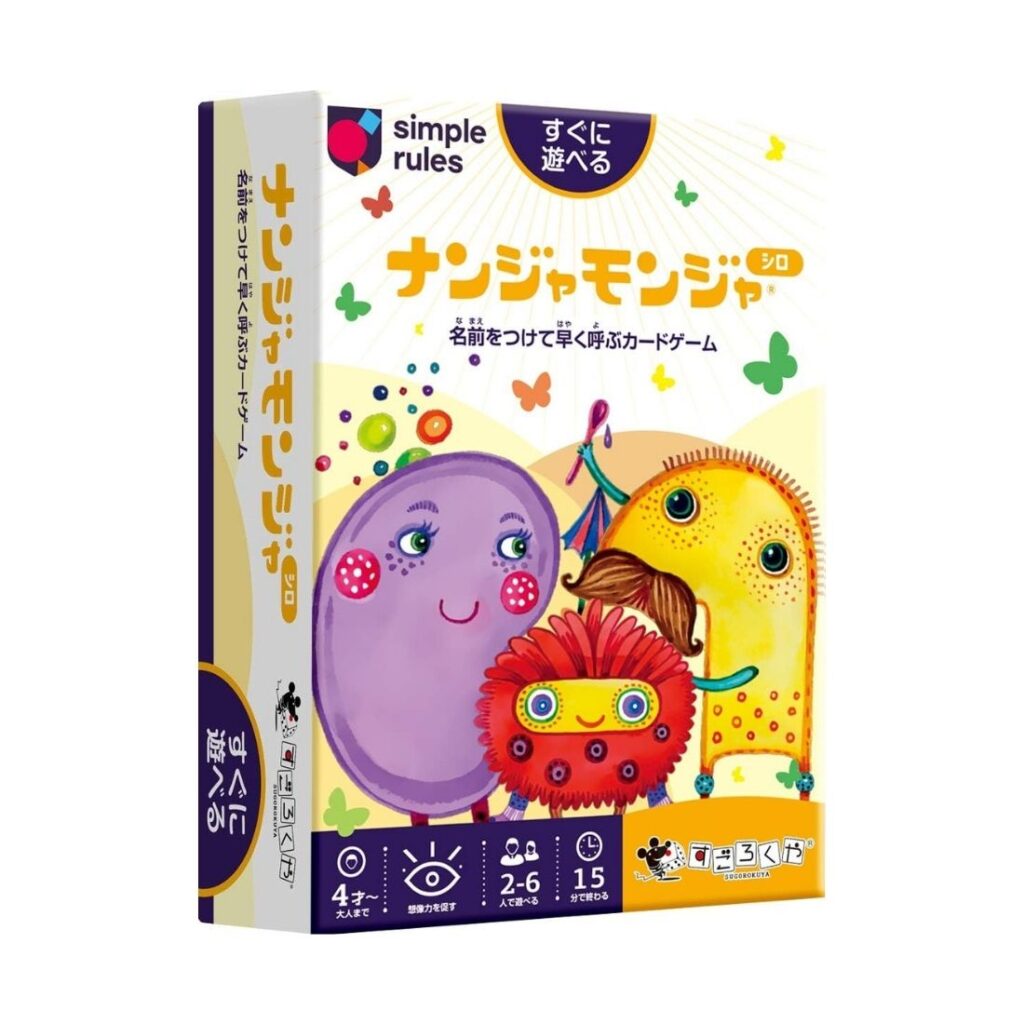 ナンジャモンジャは、へんてこでかわいい生き物に名前をつけて覚える、笑顔があふれるカードゲームです。思いついた名前を大きな声で呼び、誰が一番早く言えるかを競います。予想外の名前に大爆笑。記憶力と発想力を使いながら、みんなで楽しく盛り上がれるゲームです。
