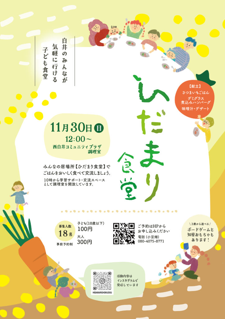 ひだまり食堂に行きたいと思ってくれる子どもや親御さん、地域住民の方たちに情報をしっかりとお届けできるように作りました。